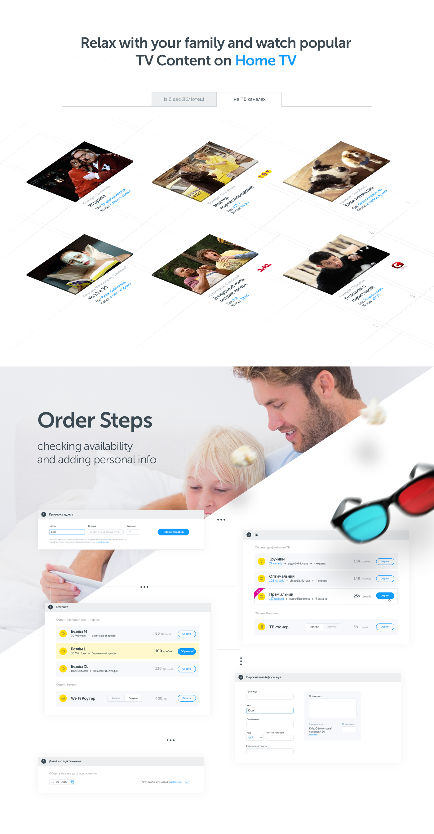 Product design for Kyivstar's TV (in partnership with Viasat). Bundle proposal Internet+TV for ukrainian customers.